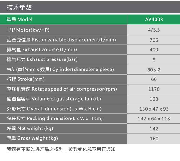 您的位置: 首頁 -> 產品中心 -> 活塞式空壓機(jī) -> 新型節能環(huán)保AV4008活塞機